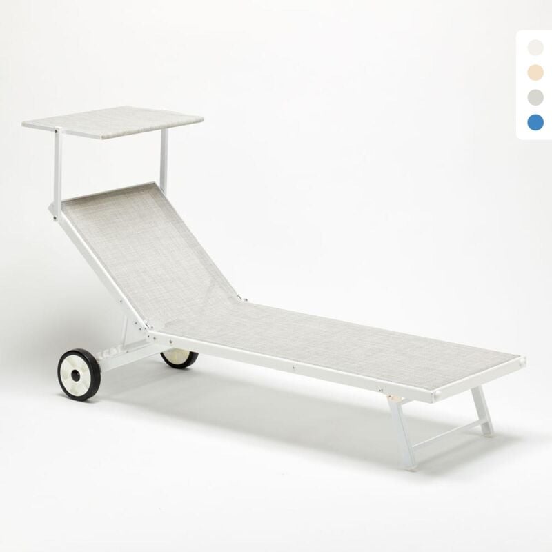 Bain de soleil avec roues transat aluminium jardin piscine Alabama - Beige