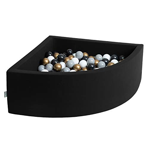 KiddyMoon Piscine À Balles pour Bébé Quart Angulaire 90X30cm/200 Balles 7Cm Fosses À Boules Jouet Enfant, Noir: Blanc/Gris/Noir/Or