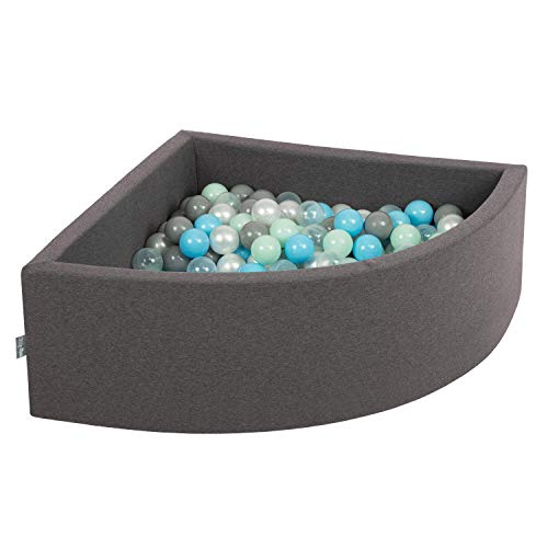 KiddyMoon Piscine À Balles pour Bébé Quart Angulaire 90X30cm/300 Balles 7Cm Fosses À Boules Jouet Enfant, Gris Foncé: Perle/Gris/Transparent/Babyblue/Menthe