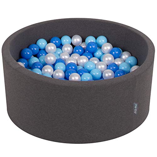 KiddyMoon 90X40cm/300 Balles ∅ 7Cm Piscine À Balles pour Bébé Rond Fabriqué en UE, Gris Foncé:Baby Blue/Bleu/Perle