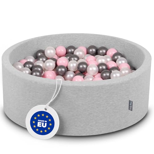 KiddyMoon Piscine À Balles pour Bébé Rond 90X30cm/300 Balles 7Cm Fosses À Boules Jouet Enfant, Gris Foncé:Perle/Rose Clair/Argenté