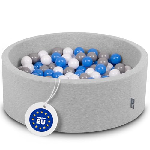 KiddyMoon 90X30cm/300 Balles ∅ 7Cm Piscine À Balles Pour Bébé Rond Fabriqué En UE, Gris Foncé: Gris-Blanc-Bleu