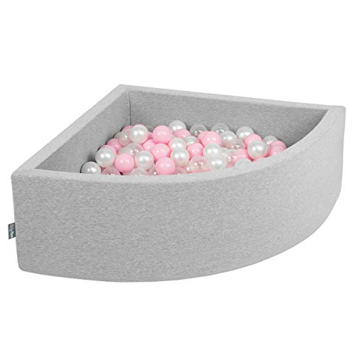 KiddyMoon Piscine À Balles pour Bébé Quart Angulaire 90X30cm/300 Balles 7Cm Fosses À Boules Jouet Enfant, Gris Clair: Perle/Gris/Transparent/Babyblue/Menthe