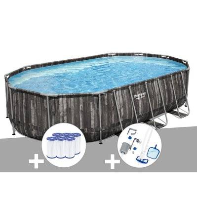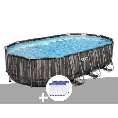 Bestway Kit piscine tubulaire ovale Power Steel décor bois 7,32 x 3,66 1,22 m + 6 cartouches de filtration