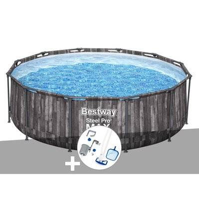 Bestway Kit piscine tubulaire ronde Steel Pro Max décor bois 3,66 x 1,00 m + d'entretien Deluxe