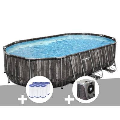 Bestway Kit piscine tubulaire ovale Power Steel décor bois 6,10 x 3,66 1,22 m + 6 cartouches de filtration