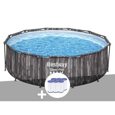 Bestway Kit piscine tubulaire ronde Steel Pro Max décor bois 3,66 x 1,00 m + 6 cartouches de filtration