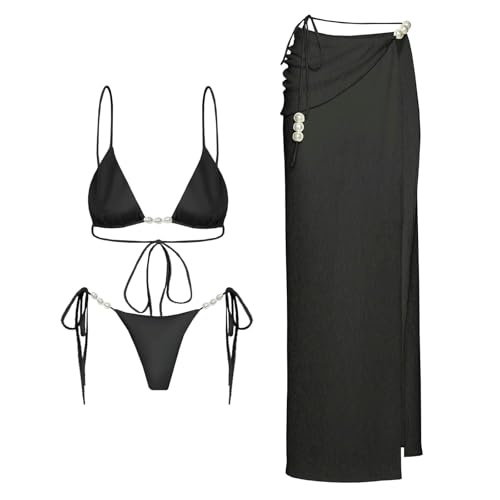 Fryloo Maillot de Bain Bikini Coquillage 3 Pièces pour Femme – Sexy Taille Haute avec Jupe Longue, Micro Biquini Imprimé La Plage, Piscine, Les Vacances D'été-ensemble3-s