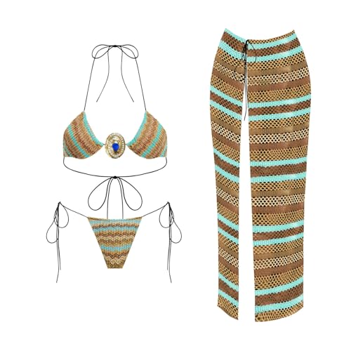 Fryloo Maillot de Bain Bikini Coquillage 3 Pièces pour Femme – Sexy Taille Haute avec Jupe Longue, Micro Biquini Imprimé La Plage, Piscine, Les Vacances D'été-ensemble6-m