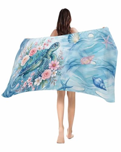 Tortue Bleue, Étoile De Mer, Coquillage Corail Serviettes De Spa Serviettes De Spa Moelleuse Serviette De Sauna Douce Drap De Bain pour Piscine Camping Femme 80X130Cm