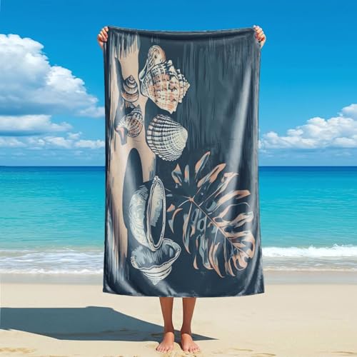 EMENZA Serviettes de Plage 150 x 200 cm, 3D Coquillage Tropical Drap de Plage XXL Microfibre à Séchage Rapide pour Femme Homme, Coton, Serviette de Bain Grande Taille pour Sauna, Piscine, Camping