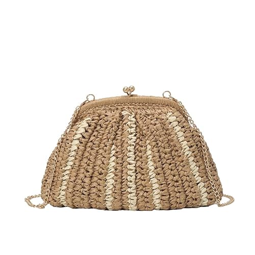 Sac à bandoulière d'été en osier avec sangle de chaîne tissée à la main - Sac de plage en forme de coquillage - Grande capacité pour femme - Voyage et piscine, kaki, 290*230*30MM