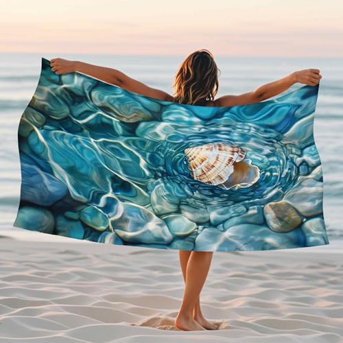Microfibre Serviette De Plage, Coquillages De L'Océan, Aquarelle Turquoise, Coquillage Drap De Plage Portable Serviette De Voyage pour Vacances Piscine Spa 80X130Cm