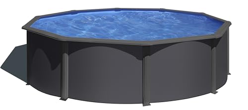 Gre KIT460GY Louko - Piscine Hors-Sol en Acier, Piscine Ronde avec Structure en Acier Gris Anthracite. Piscines Hors-Sol pour Jardin, Ø460x120 cm