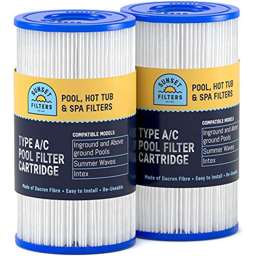 Sunset Filters Lot de 2 cartouches filtrantes de type A/C pour pompe de filtration Intex, piscines creusées et hors sol, filtre de piscine Summer Waves de type A ou C, fabriqué en fibre Dacron,
