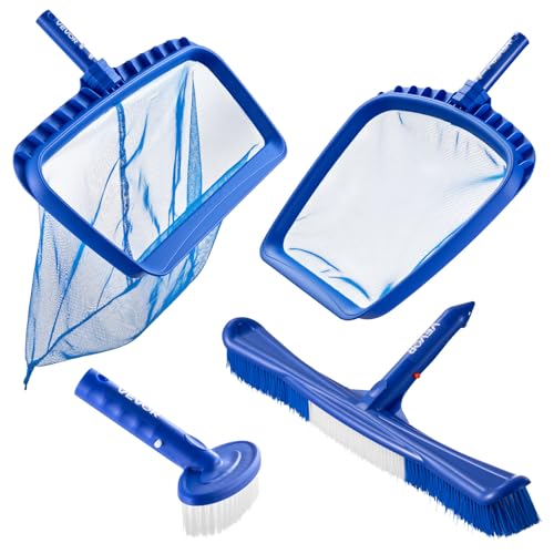 VEVOR Kit de Nettoyage de Piscine, 2 têtes de Brosse Amovibles 510 mm/140 mm et 2 épuisettes de Piscine Maille Fine, Ensemble d'outils de Nettoyage 4 en 1 pour Piscine creusée/Hors Sol, sans poteaux