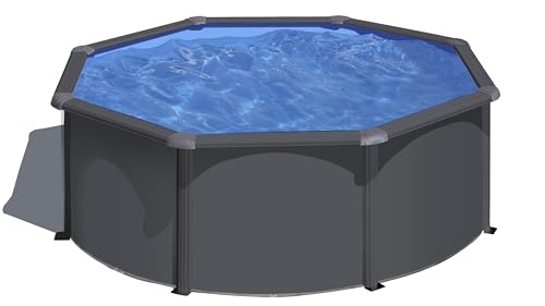 Gre KIT350GY Louko - Piscine Hors-Sol en Acier, Piscine Ronde avec Structure en Acier Gris Anthracite. Piscines Hors-Sol pour Jardin, Ø350x120 cm