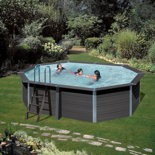 Piscine hors sol octogonale en composite - Grise - 5,24 x 3,86 x H 1,24 m