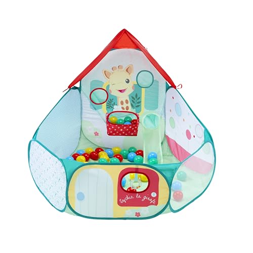 Sophie la Girafe - Piscine à Balles Bébé – Aire de Jeu Pop-Up dès 6 Mois – Jeu Motricité Bébé – 40 Balles Colorées et 2 Toboggans Magiques – Développement Coordination – Structure Légère