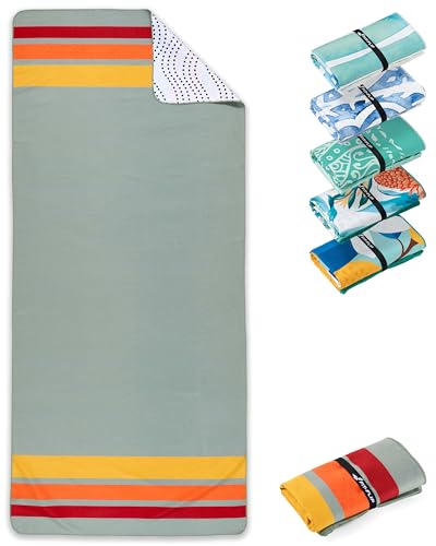 Fit-Flip Serviette de Plage Microfibre Grande - Fine et légère - à séchage Rapide – Drap de Piscine XXL - Serviettes Anti-Sable 100% recyclée – rayé Vert-Gris foncé – 160cm x 90cm