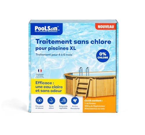 BSI - PooLSan - Solution sans Chlore - pour Une Désinfection Totale des Grandes Piscines - Piscines Hors-Sol Et Enterrée - Jusqu'à 4 à 6 Mois - Elaboré en Europe