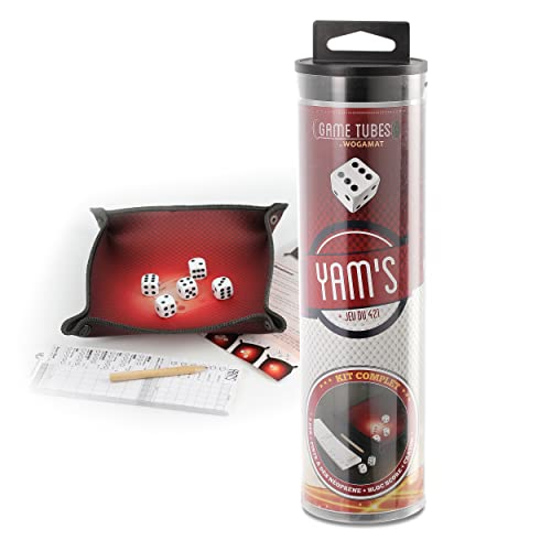 WOGAMAT - Game Tubes Yam's 421 - Kit avec Piste de Dés en Néoprène + 5 Dés + Bloc de Feuilles de Score et Crayon - Tube Transportable