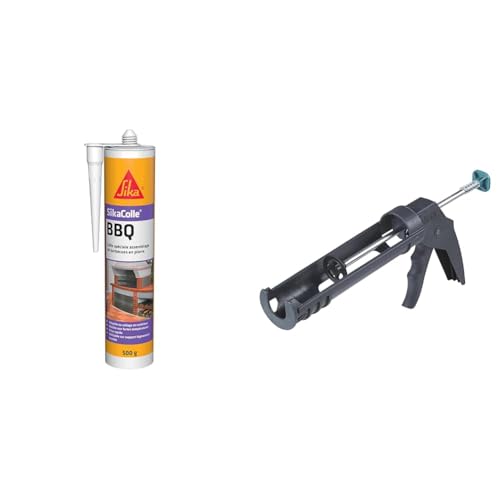 SikaColle BBQ, Colle spéciale assemblage de petits barbecues en pierre, 500g, Beige clair & wolfcraft 4351000 - Pistolet à Cartouche MG 100 - Cartouches de 310 ML - Pression max. 130 kg