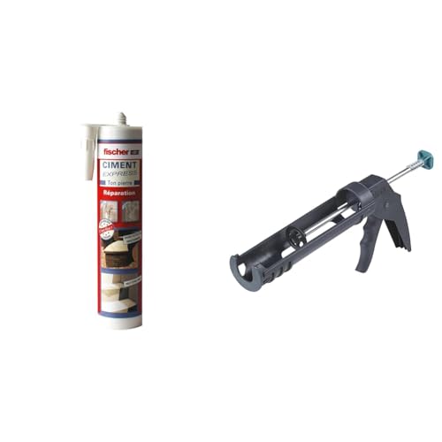 fischer - Ciment Express Ton Pierre 310ML - 1 cartouche & wolfcraft 4351000 - Pistolet à Cartouche MG 100 - Cartouches de 310 ML - Pression max. 130 kg