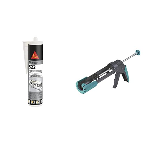 Sikaflex-522, Colle-mastic pour jointoiement de caravanes et camping-cars, Blanc, 300ml & Wolfcraft 4352000 Pistolet à Cartouche Mécanique MG 200 ERGO - 310 ml - Stop Goutte Automatique