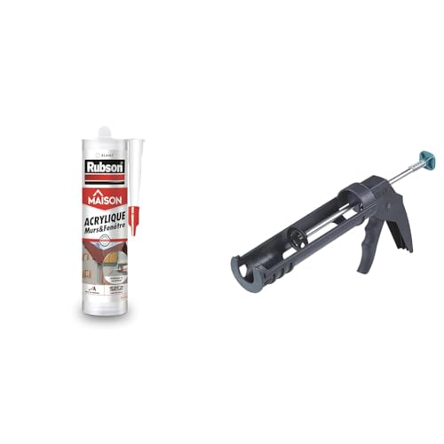 Rubson | Mastic Maison Acrylique Murs & Fenêtres – Mastic acrylique blanc & wolfcraft 4351000 - Pistolet à Cartouche MG 100 - Cartouches de 310 ML - Pression max. 130 kg