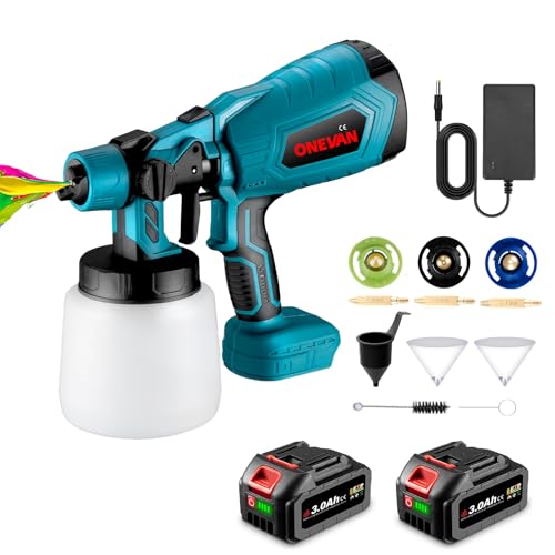 ONEVAN Pistolet a Peinture sans Fil, Pistolet Peinture Electrique Batterie avec 2x3.0Ah Batteries, 3 Buses, 1000ml, PulvéRisateurs de Peinture sans Fil pour Maison, Armoires, Clôtures, Plafonds