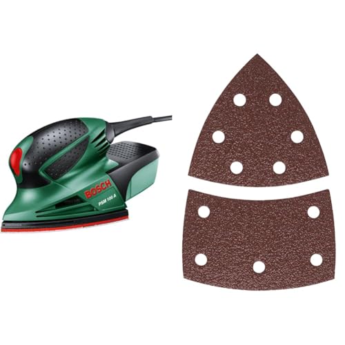 Bosch Ponceuse multi-usages PSM 100 A (100 watts, en coffret) + 10 feuilles abrasives (pour la peinture, le vernis, le bois dur/doux, les panneaux de particules, le métal, la rouille, grain 80)