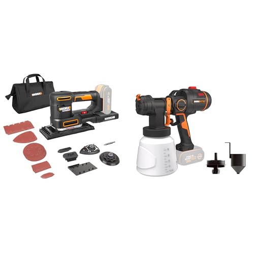 PACK WORX PRO+ Ponceuse 5-en-1 20V + Pistolet à Peinture 20V (Sans Batterie ni Chargeur, Idéal Pour Tous les Projets de Bricolage et de Rénovation)