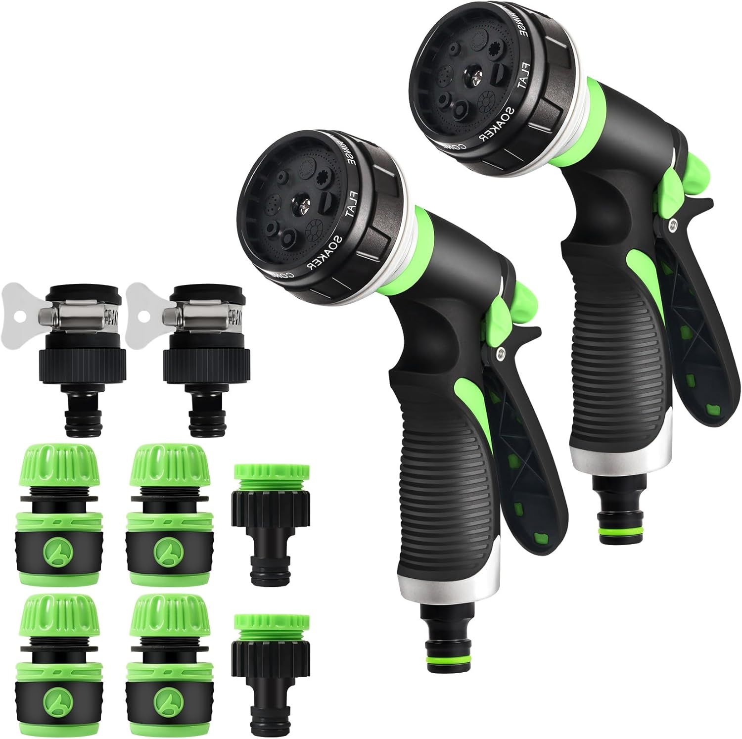2 Pièces Pistolet d'arrosage,Pulvérisateur de Jardin avec Interface,8 Modes Réglable d'Arrosage Pistolet,Pistolet Arrosage Haute Pression pour Jardin,Lavage de Voiture,(Vert)