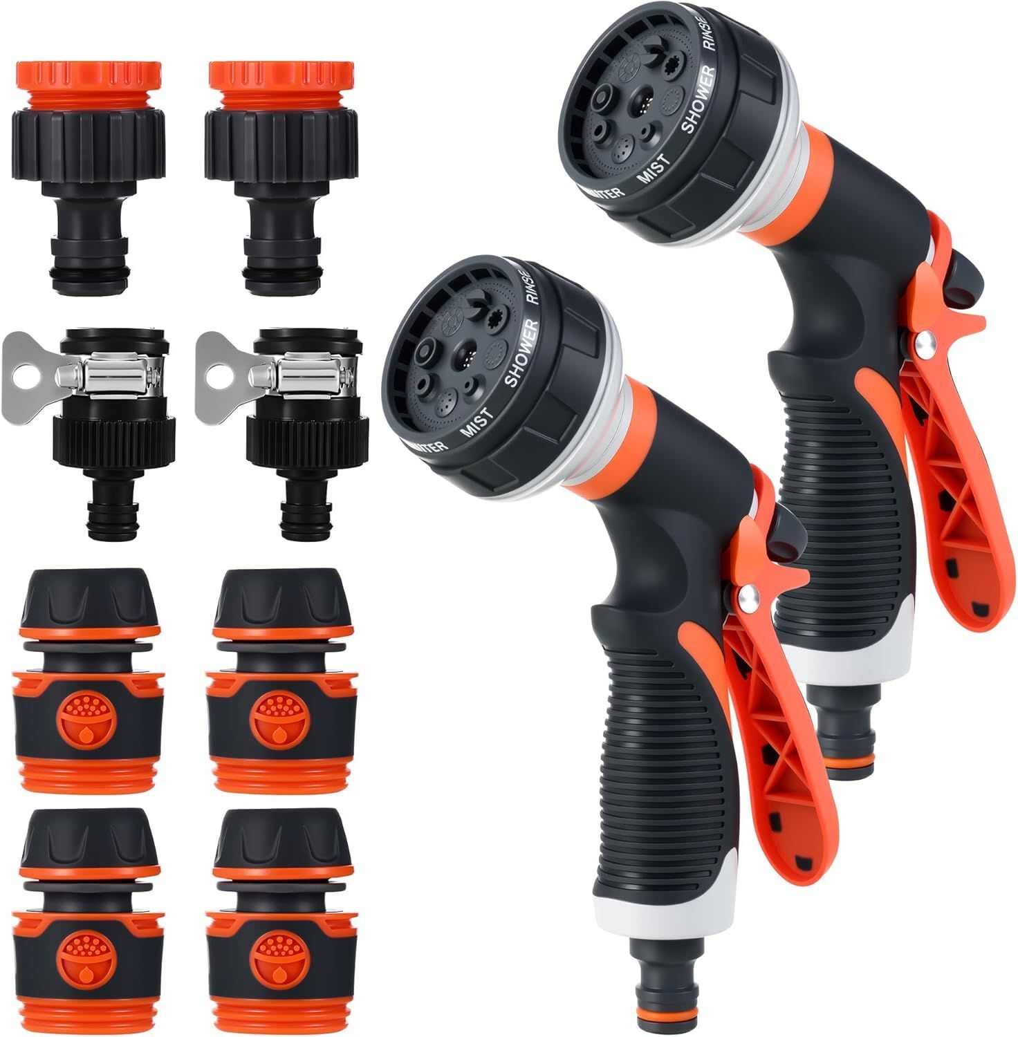 2 Pièces Pistolet d'arrosage,Pulvérisateur de Jardin avec Interface,8 Modes Réglable d'Arrosage Pistolet,Pistolet Arrosage Haute Pression pour Jardin,Lavage de Voiture,(Orange)