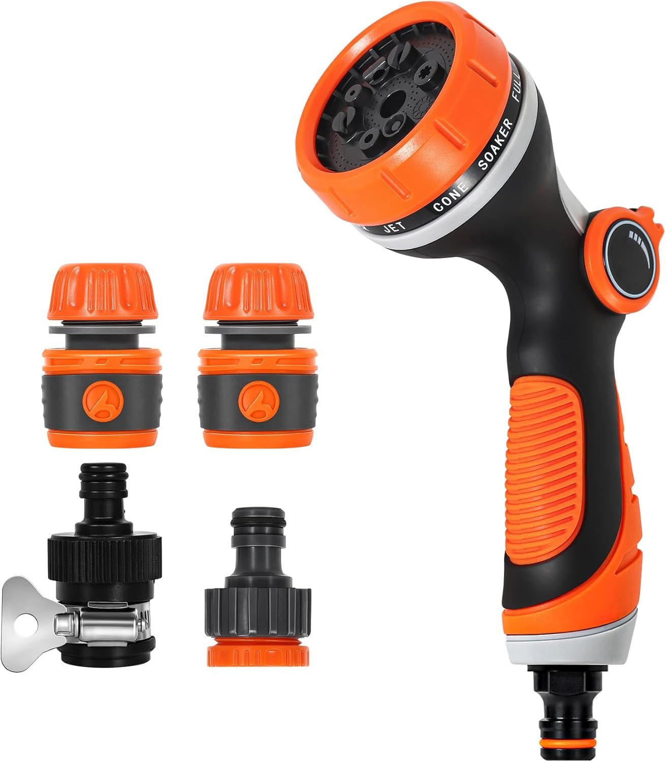 ERSAN-2 Pièces Pistolet d'arrosage, Pulvérisateur de Jardin avec Interface, 8 Modes Réglable d'Arrosage Pistolet, Pistolet Arrosage Haute Pression pour Jardin, Lavage de Voiture, (Orange)