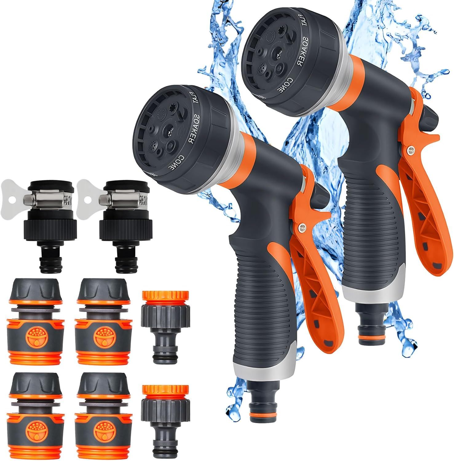 Ensemble de 2 Pistolet d'Arrosage pour jardin,8 modes de Pistolet Arrosage Haute Pression,convient pour Arrosage Jardin,bain des animaux,lavage des véhicules,outil de jardinage multifonction (orange)