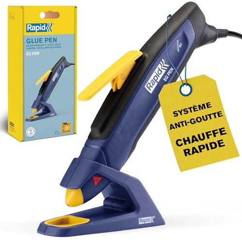 RAPID EG Pen Pistolet/Stylo, Bâtons de Colle 7mm, Idéal pour Les Loisirs Créatifs, La Décoration et Les Petites Réparations, Chauffe en 60 Secondes, Support avec Égouttoir Intégré, Boîte (5001474)