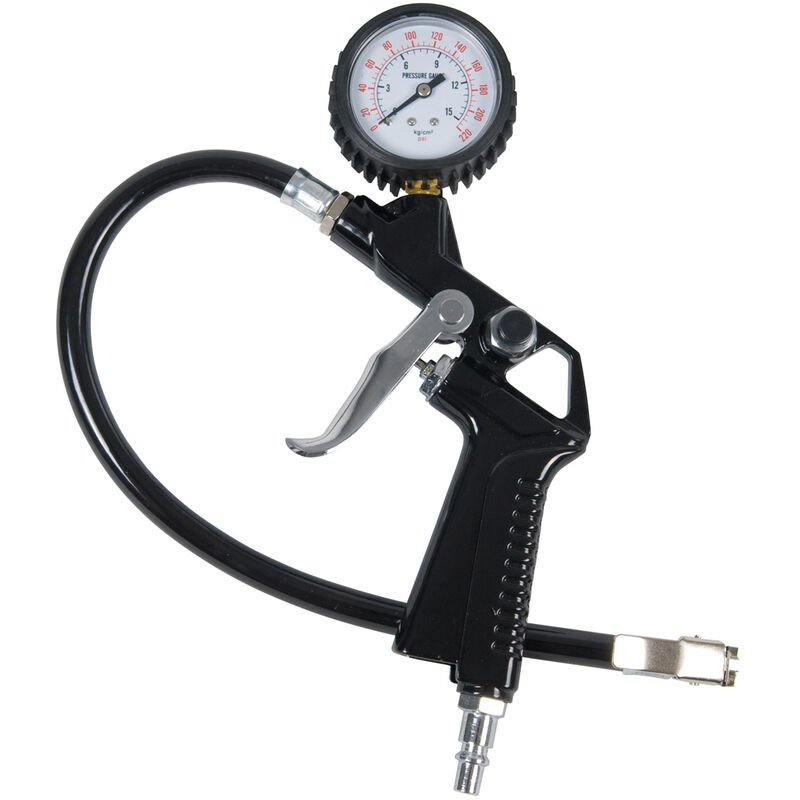 Wiltec - Pistolet de gonflage Air comprimé 0-16 bars Jauge de pression Air Pneu de voiture Moto Pneumatique