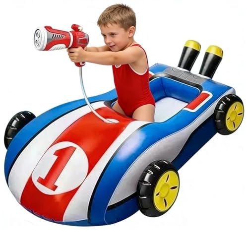 Jouet Flottant Piscine Enfant - 105x85cm Voiture Aquatique Gonflable | Pistolet à Eau Intégré | Jeu Été Jardin Mer pour Garçons Filles Ados Écoliers | Jouet Interactif Piscine Flottante | Divertisseme