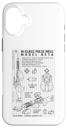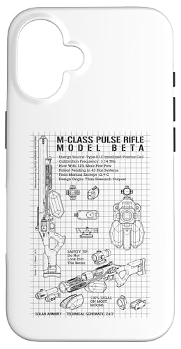 Science-Fiction Pistolet Laser Fusil à Impulsion drôle Sci FI Blueprint Coque pour iPhone 16 Pro Max