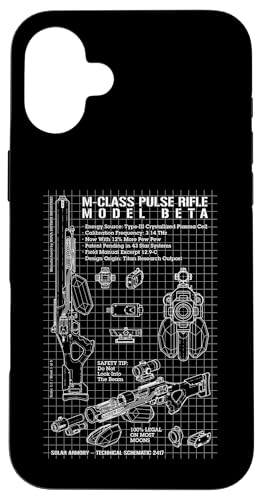 Science-Fiction Pistolet Laser Fusil à Impulsion drôle Sci FI Blueprint Coque pour iPhone 16 Plus