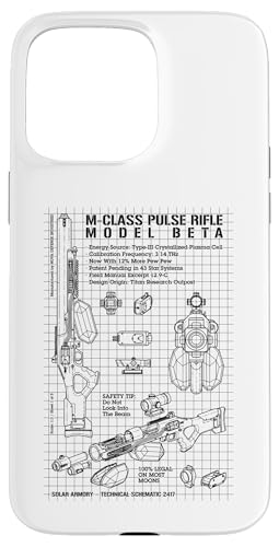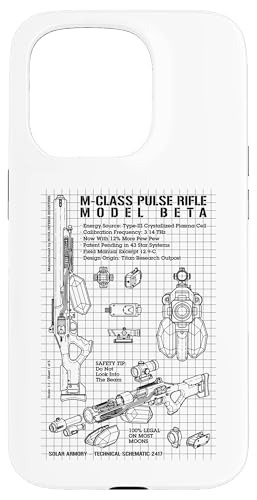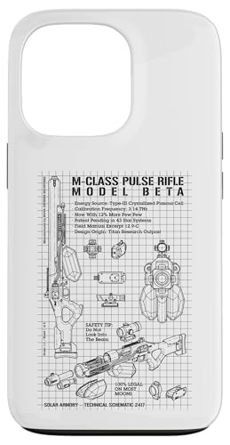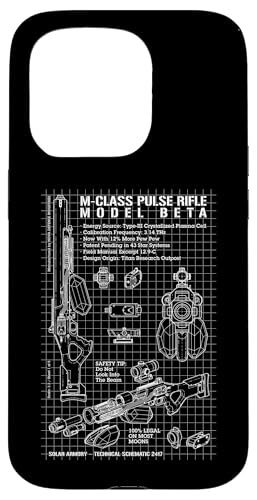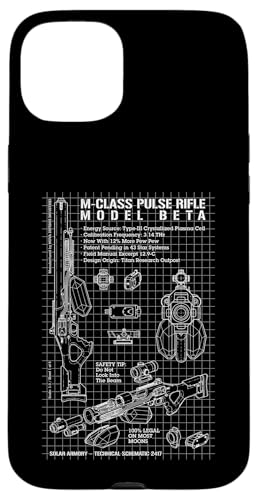 Science-Fiction Pistolet Laser Fusil à Impulsion drôle Sci FI Blueprint Coque pour iPhone 15 Pro Max