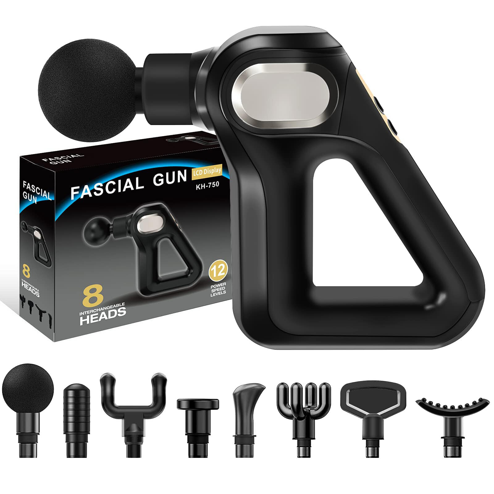 Pistolet Massage Électrique 8 Têtes LCD – Masseur Anti-Fatigue Musculaire