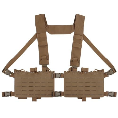 Peminkoo 34 Alpha Chest Rig Tactical Hunting Plate Carrier H Harness Système Molle 5.56 7.62 Pistolet Fusil MAG Pouch Airsoft Paintball (Khaki)