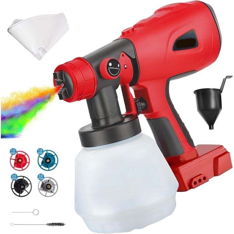 Pistolet à peinture électrique sans fil compatible avec les batteries Dewalt 18 V-20 V, 4 buses, 3 modes de pulvérisation, réservoir de 1 000 ml,