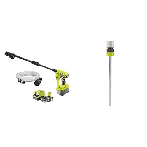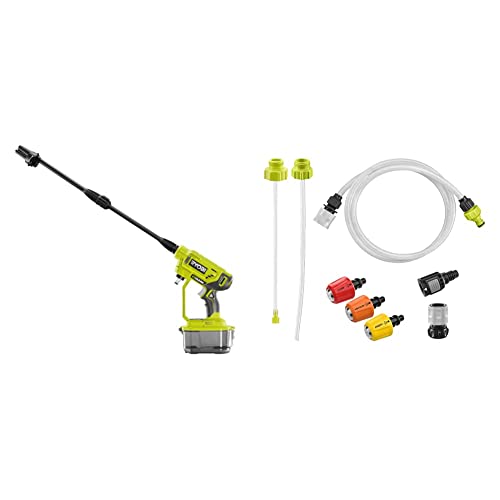 Ryobi - Pistolet Haute Pression 18V - 22 Bars - 182 L - buse 3-en-1 - kit de siphonnage 6 m Inclus & Lot 3 Buses de brumisation EZCLEAN + Adaptateur de Bouteille 2 L + Adaptateur Large Contenant
