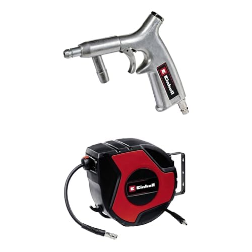 Einhell Pistolet de sablage à air comprimé pour compresseur (8 Bar Max, réservoir 1L, Levier de déclenchement Constant, raccord Inclus) + Dévidoir Auto