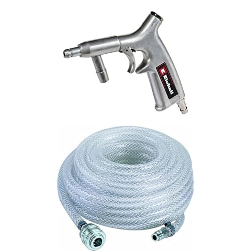Einhell Pistolet de sablage à air comprimé pour compresseur (8 Bar Max, réservoir 1L, Levier de déclenchement Constant, raccord Inclus) + Tuyau PVC 10m
