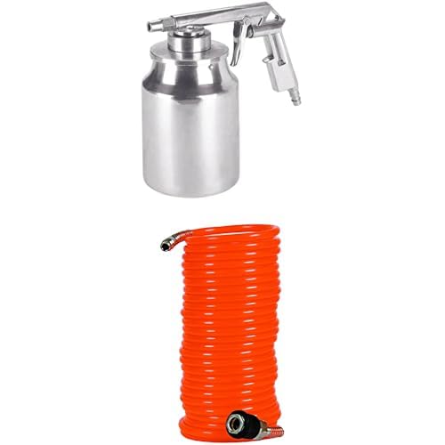 Einhell Pistolet de sablage à air comprimé pour compresseur (8 Bar Max, réservoir 1L, Levier de déclenchement Constant, raccord Inclus) + Tuyau Spirale 8m